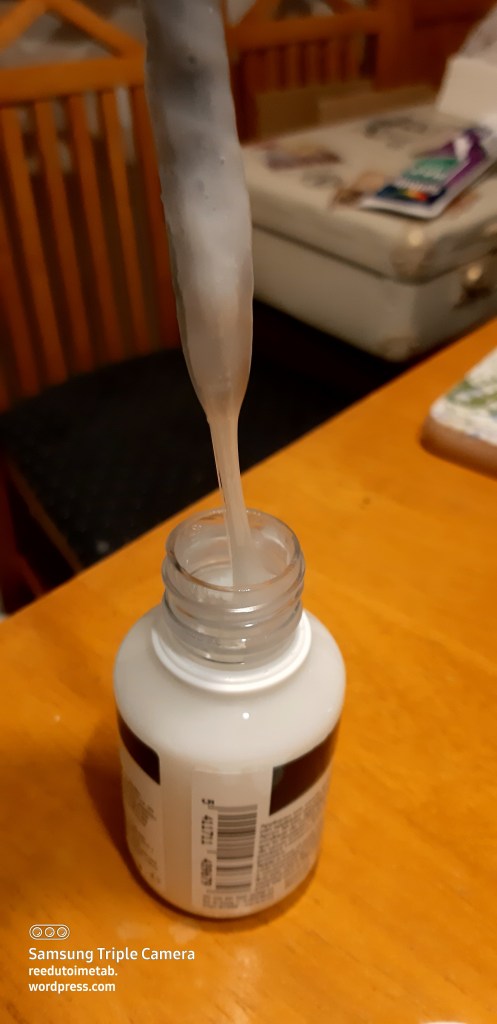 Kui aga lakk kohale jõudis ja proovima hakkasin oli üllatus suur. Lakk ei tulnud pudelist välja. Proovisin siis lakki pintsliga pudelist võtta. See aga vedas laki kui vedela kummi endaga kaasa. Vedasin ja vedasin. Proovisin seda paksu massi oma katseks ette valmistatud pinnale määrida. See pintsli küljes tolknev ollus aga oli üks klimp mida polnud võimalik laiali hõõruda.