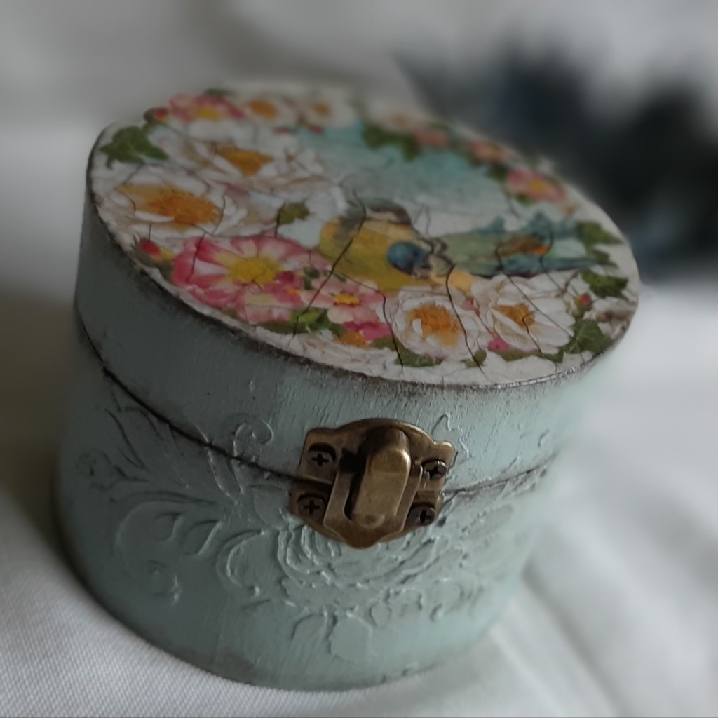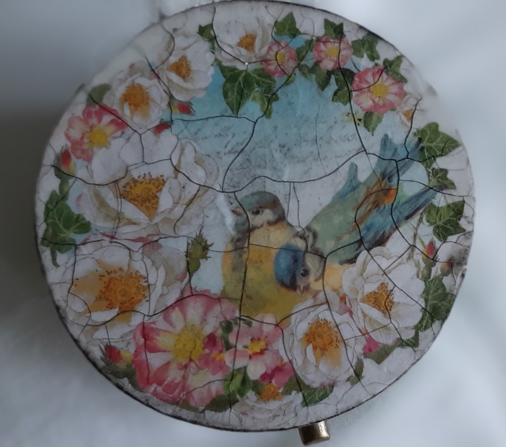 Proovisin katta krakleelakki mööbli lakiga, nagu seda tegin Daily lakiga aga oh õudust, kraklee hakkas kobrutama ja ma pidin kogu laki maha kraapima. Õnneks olin pildi enne kaitsva matt lakiga üle võõbanud. Nii säästsin ennast suurest tööst, kogu karp uuesti teha.