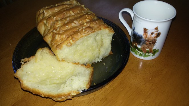 Rulli taigen 4 kandiliseks ja u 1 cm paksuseks . Sega pressitud küüslauk võiga ja määri taignale.