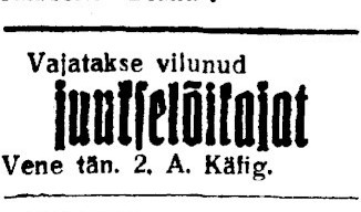 Veidi Digaris tuhnimist ja leidsin ka tööpakkumised. Salongi omanik A.Käfig ja F.Käfig