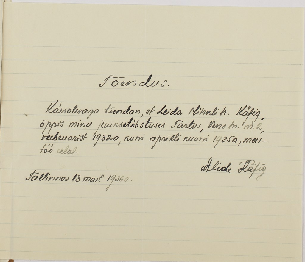 Samas … see lahutus ei olnud siiski nii sõbralik kui esialgu paberitest näib. Lahutustoimikut edasi sirvides tuleb välja, et Alide ei ilmunud lahutusele. Ta kirjutas avalduse, et otsuse võib teha ilma temata, kuna ta ei viibi sellel ajal Tartus.