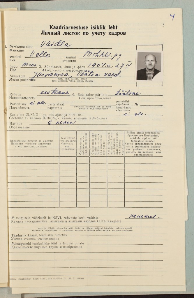 Õnneks leidsin arhiivist paar Vello dokumenti. Lõpetan loo Vellost siis nendega.
