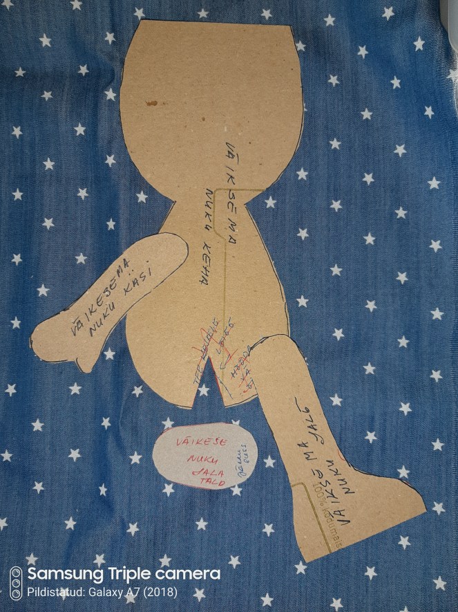 Loomulikult tuli ajakri minuga koju kaasa ja otse loomulikult lõikasin kohe ka esimese nuku kangast välja.