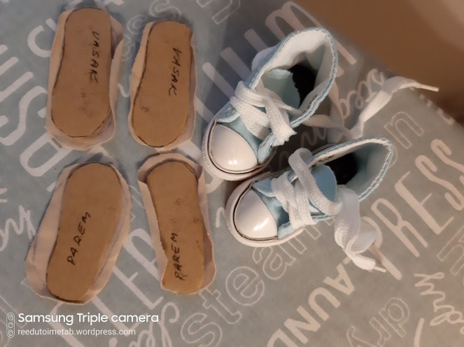 Kõigepealt valin nukule papud ja võtan papu põhjast talla kuju ja mõõdu.