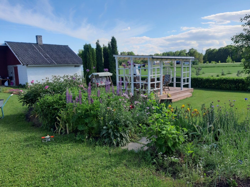 Ei sa jooksed mööda hoovi, kord voolikuga, kord rehaga, oksakääridega ja heki lõikuriga. Näitad päikesele oma aastatega laiaks istutud tagumist poolt ja kitkud maasikate vahelt umbrohtu, toestad herneid, istutad lilli ümber. No mida imet on vaja aeda muretseda lilli, mis iga teatud aja tagant tahavad reisida peenra teise otsa. Aga näed ilus on.