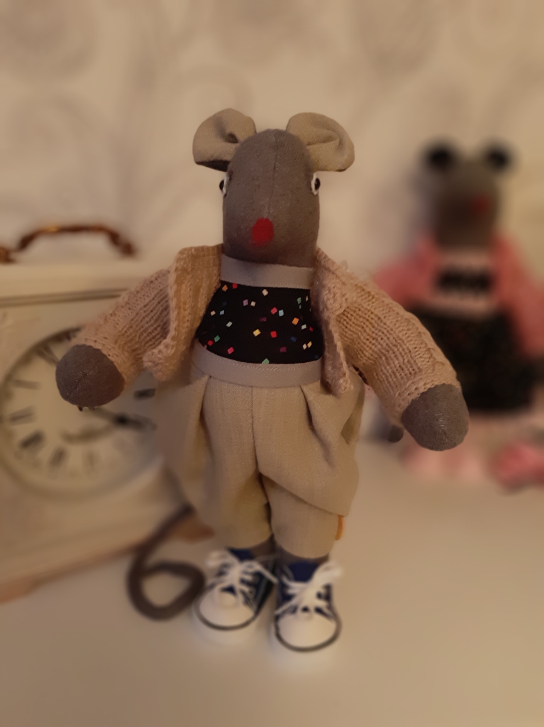 Kertu on on 32 cm pikk. Tal on seljas voodriga õhuke kunstkangast kleit ja villasest lõngast kampsun. Peas on sünteetilisest lõngast müts.. Jalas on kollased ketsid